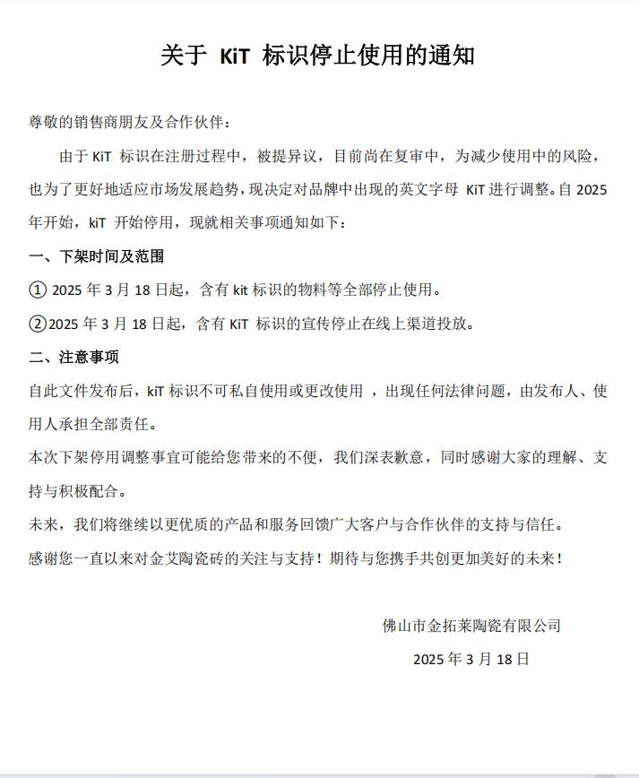 • 關(guān)于KIT標(biāo)識(shí)停止使用的通知——關(guān)于KIT標(biāo)識(shí)停止使用的通知
